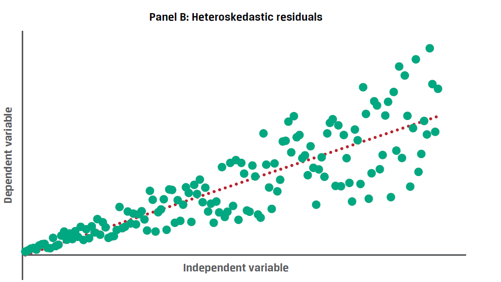 老师,请问下如果同方差被违反了,那么残差散点图画出来是什么样的呢?序列自相关的情况下和残差和X线性相关的情况下,残差散点图又是什么样呢?
