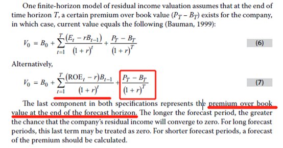 多阶段的residual income model可以表述成如下形式: