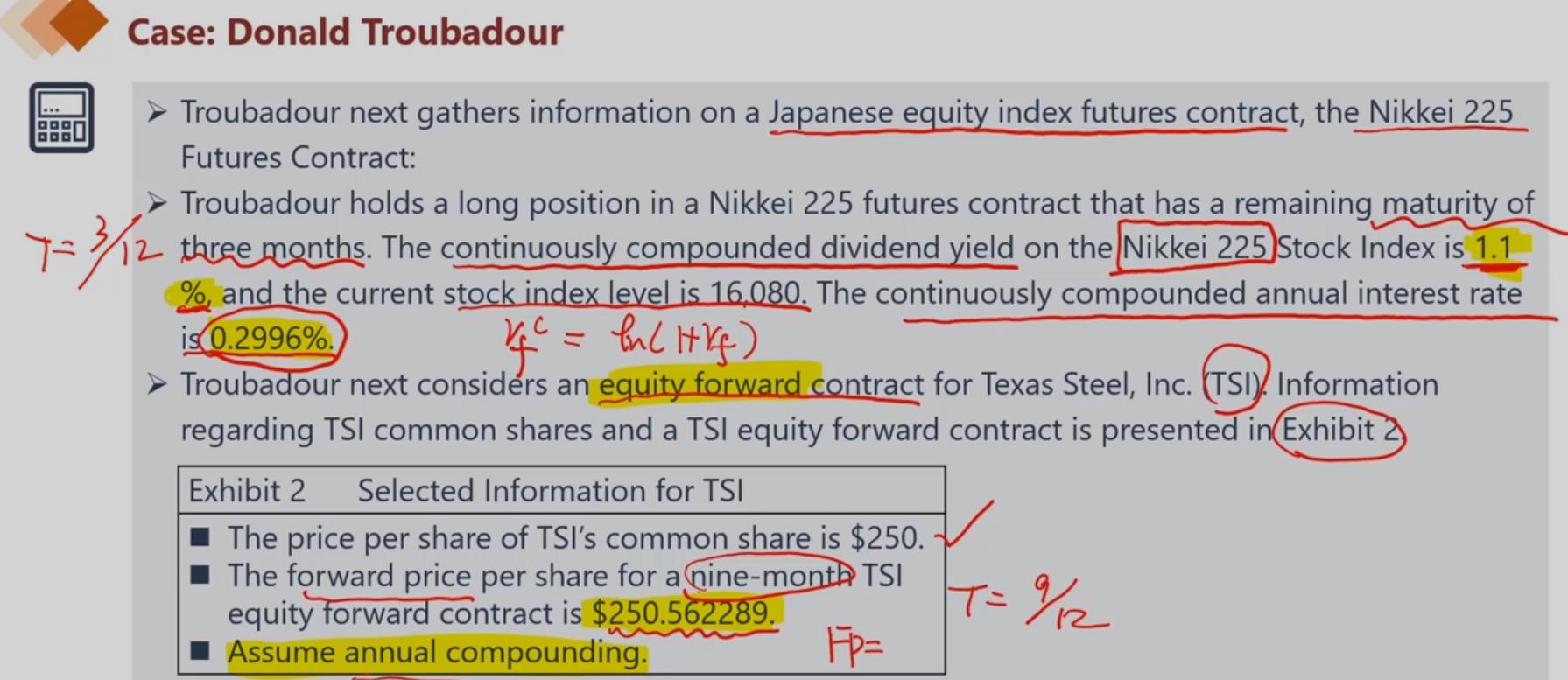 TSI远期合约的标的资产是指数,指数本身是没有持有成本CC和收益CB,题目也没有给相应的数字,所以CC和CB都是0