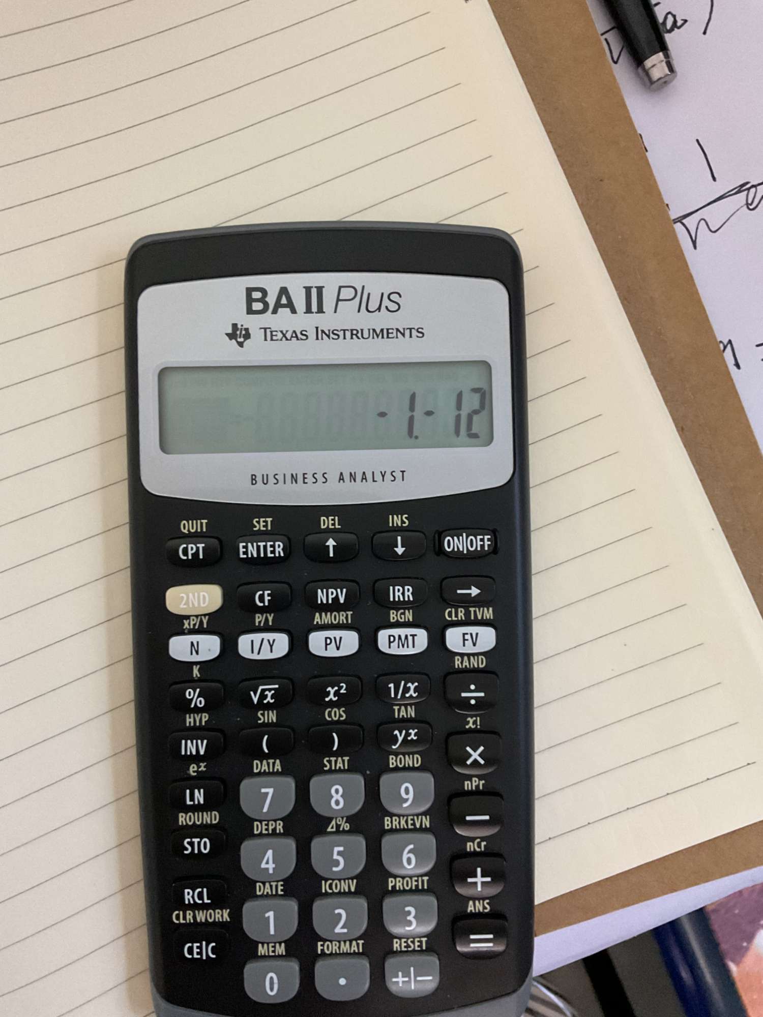 请问,计算器出现 -1.-12, 是怎么回事?-0.6× 260/27 +76/9 - 0.4× 20/3=-1.-12;