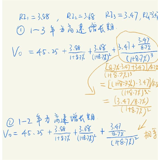 假设1-2年是高速增长期。最后阶段的开始的时点是第二年年末。