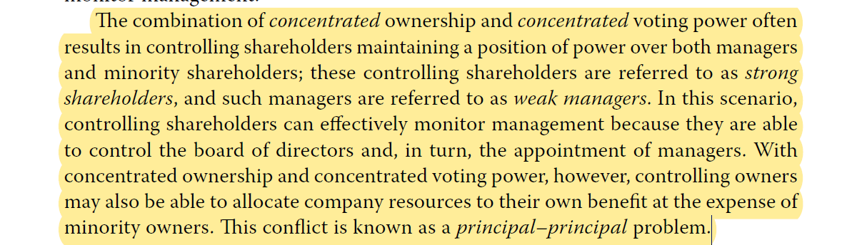 outstanding shares. Each ownership share has equivalent voting rights“说明股东是有集中的控股和投票权的,在这种组合下一般会引起principal-principal 问题(图1);