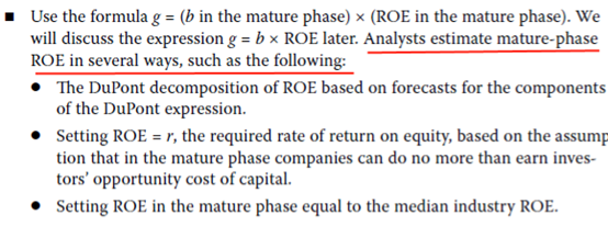 2)设ROE=re,基于的假设是成熟阶段的公司获得的收益不会超过cost of equity。