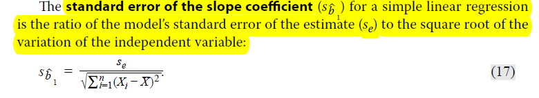 系数标准误为SEE除以自变量变化平方根。公式见下图。
