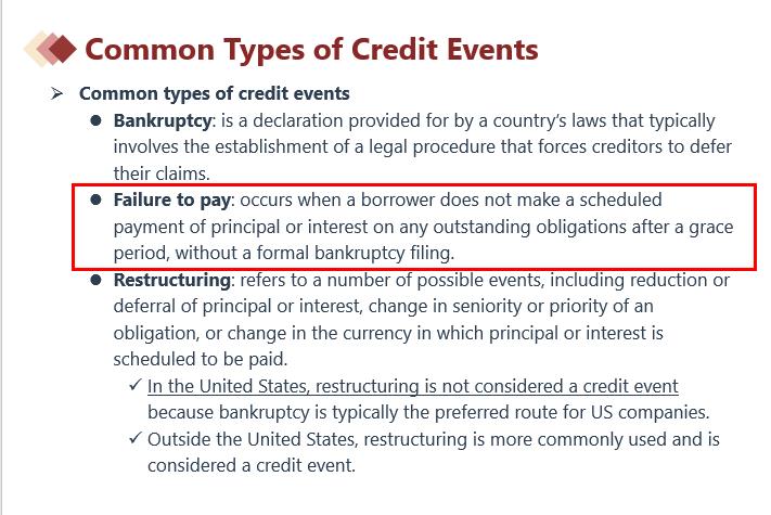 这里因为题干的描述属于Failure to pay,只要any outstanding obligations after a grace period,所以触发了credit events。