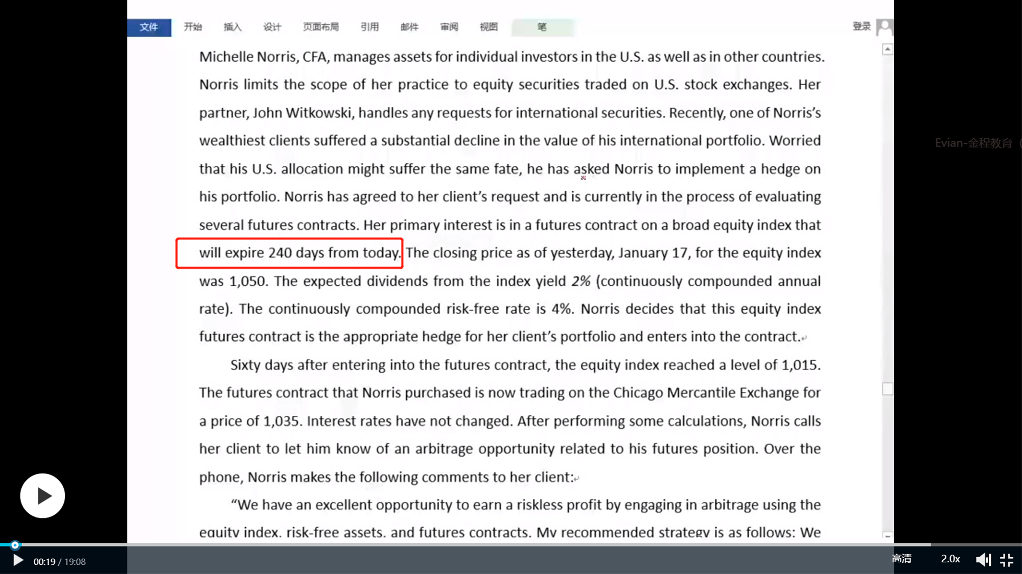 Q1,问的是January18的价格,18号不是这个contract的第一天么?所以算日期的时候为什么不是1/365而是用240/365,这个地方不太理解。