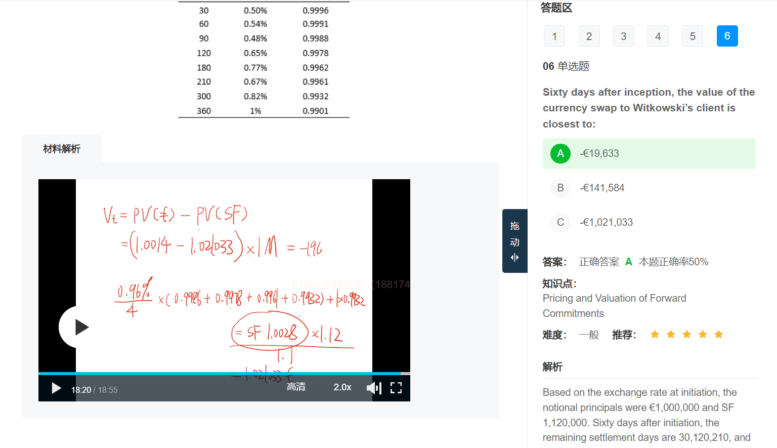另外Q3这个题目,讨论的是股指期货,用现货价格定价1025(截图2)和1035比较,可以理解为用反向合约估值的思路,也就这一种解题思路,没有其他的了。但是这个思路和“折现因子”没有关系,折现因子用于“利率互换”或者“货币互换”互换合约。