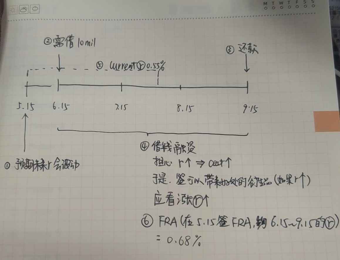 如下图所示时间轴,找到目标时间段,是6.15至9.15,对应的FRA rate是我们要找的利率期权的执行价格