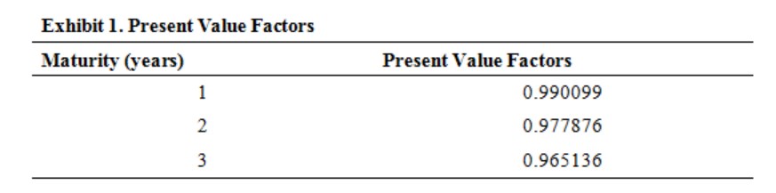 Q2说我们可以使用Exhibit 1的数据,它这个表里的数据是即期利率和折现因子,和Q1算出来的固定利率没有直接关系