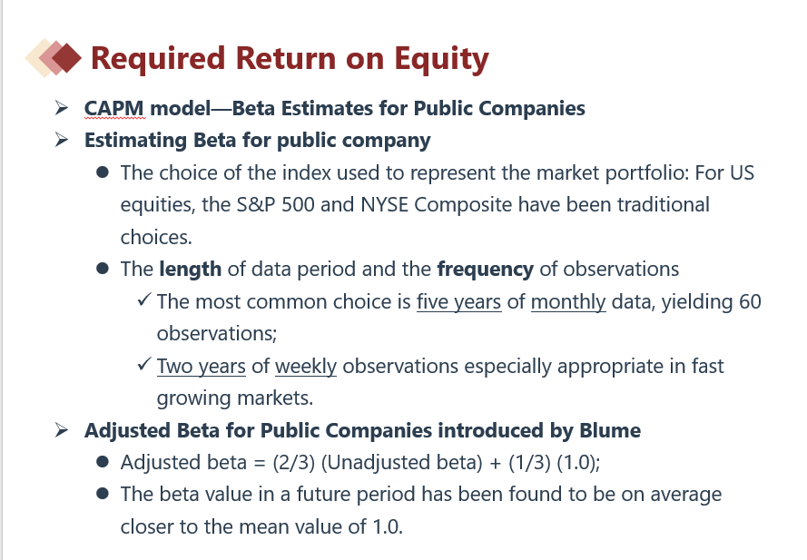 对于只含有equity的组合,使用forward looking beta来衡量风险。forward looking beta就是adjusted beta。
