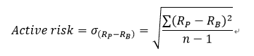 关于return risk与active risk的区别。return risk就是整个组合收益率的标准差,用符号可以表示成σ Rp。但是active risk主动风险,是通过主动投资获得超额收益部分,所要承受的风险,用符号表示是σ(Rp-Rb)。