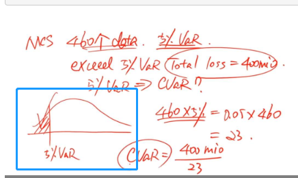 同学,下午好。5%VaR左边的阴影部分的总损失是400million。