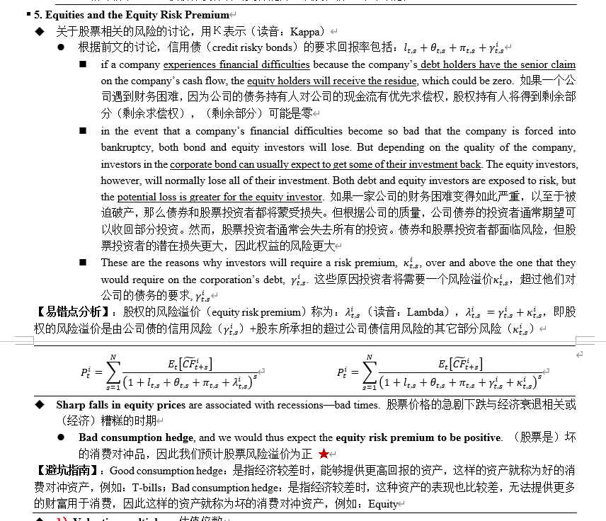 1.股权的风险溢价(equity risk premium)是由公司债的信用风险+股东所承担的超过公司债信用风险的其它部分风险。