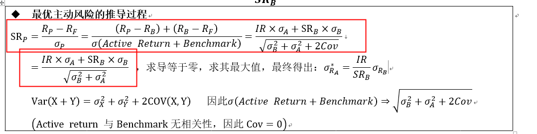而且,关于最优组合,不是active risk最小,是active risk最大:使得组合的sharp ratio最高,在sharp ratio最高的情况下,承担最大的active risk。