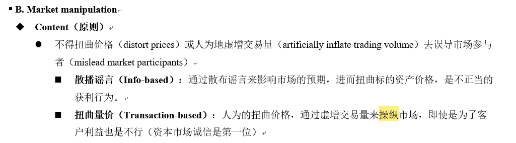 请问老师,在market manipulation中,除了前两个违反了道德II(B),其他的算不算非法操纵了市场呢?这些策略,在真实交易中可以用么?