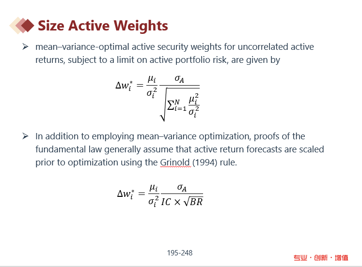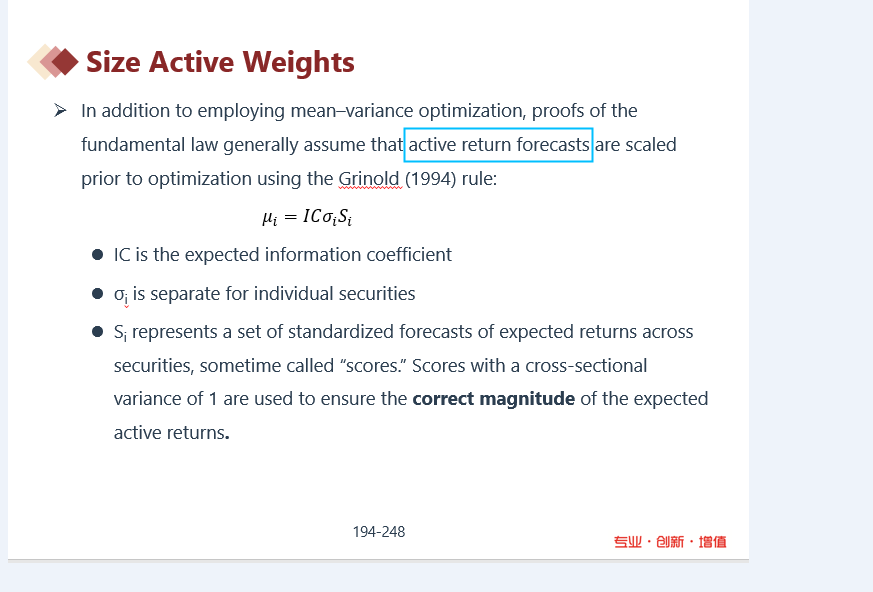 同学,上午好。当前这道题目计算的是active return。用到的知识点和公式见截图。在视频里25:30左右开始。这部分是推导过程。