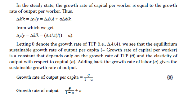 得出来的是人均产出的稳态增长率 (steady growth rate of output per capita)