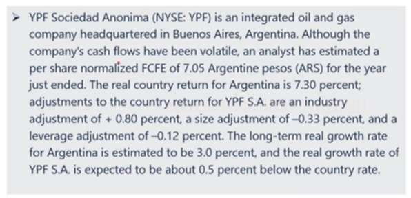 这里基于country return对 YPF的return进行调整,(adjustments to the country returnforYPF S.A)应该算的是WACC,请问从题目哪里看出来是对r的调整?