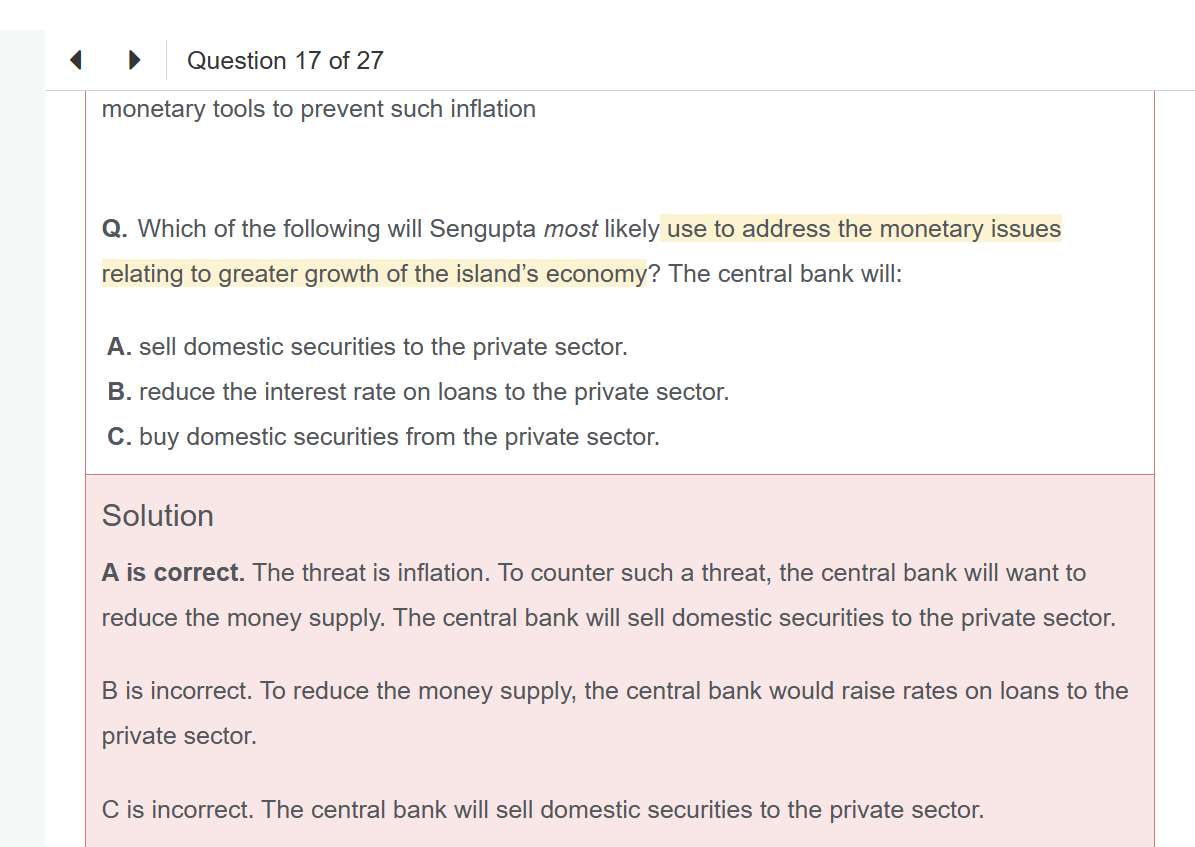 Golden Island Case里有道题的答案是sell domestic securities to the private sector to reduce the money supply, 可以解释一下吗,减少money supply会使利率上升吗?