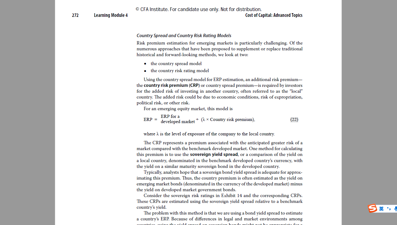 原版书给出的解释是where λ is the level of exposure of the company to the local country.