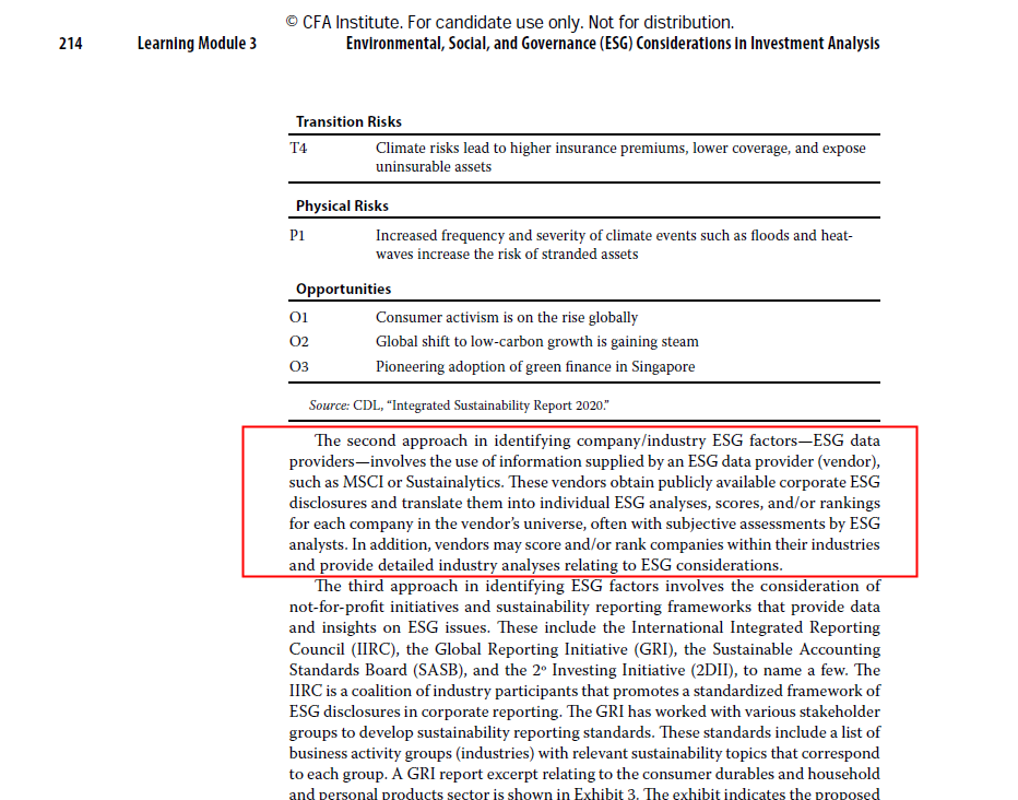 ESGdata providers这里基本没有考点,只介绍了分析师们获得ESG信息的来源有这三个