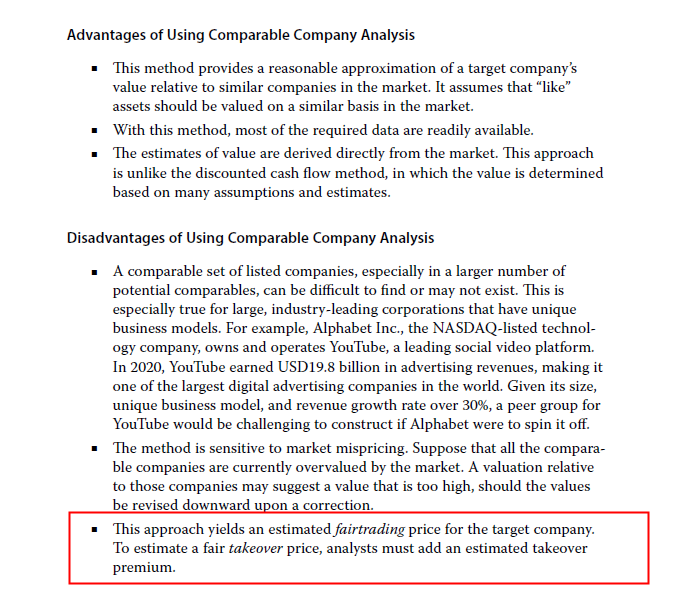 你好同学在考察可比公司法的优缺点可参考下面原版书内容的截图