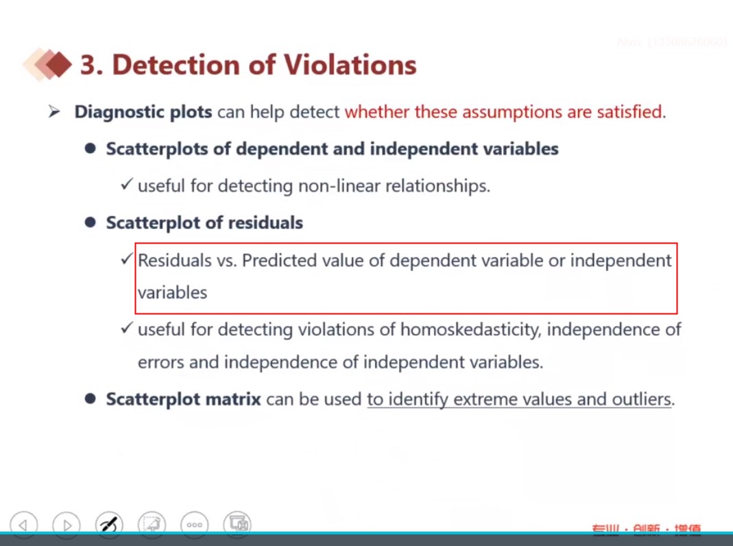 同学你好。课上都是讲过的,下面是课程中的截图内容,均包含residual-predicted plot。投资更加优秀的自己👍 ~如果满意回复可【采纳】,仍有疑问可【追问】,您的声音是我们前进的源动力,祝您生活与学习愉快