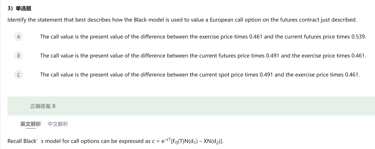 Q3考BSM模型的公式解释,公式如下图解析所示,公式会用到题目给出的信息: