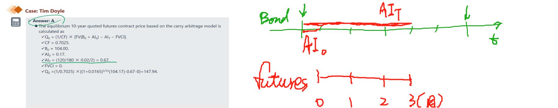 我明白AI是当下时点距离上一次coupon payment date时间段产生的应计利息,但由于S0对应的是已经过去30天的价格,国债期货合约也是在此时点inception,所以这个地方的AI (T) 不应该是90天么?( 从期货合约inception开始,而不是120天,因为之前的30天我还没有买这个bond), 不知道是哪里理解错了,谢谢