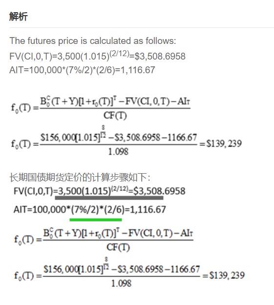这题它默认了期货期初时间点就是发行标的资产债券的时间点,AIT是8/12这个时间点,往回找6/12这个时间点,累计了一年coupon的2/12,应该用一年的coupon乘以2/12,或者用半年的coupon乘以2/6,这两种算法都可以