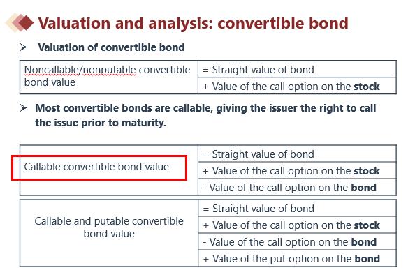 因为这个公式是Callable convertible bond value,并不是普通的可转债公式。见下图讲义。