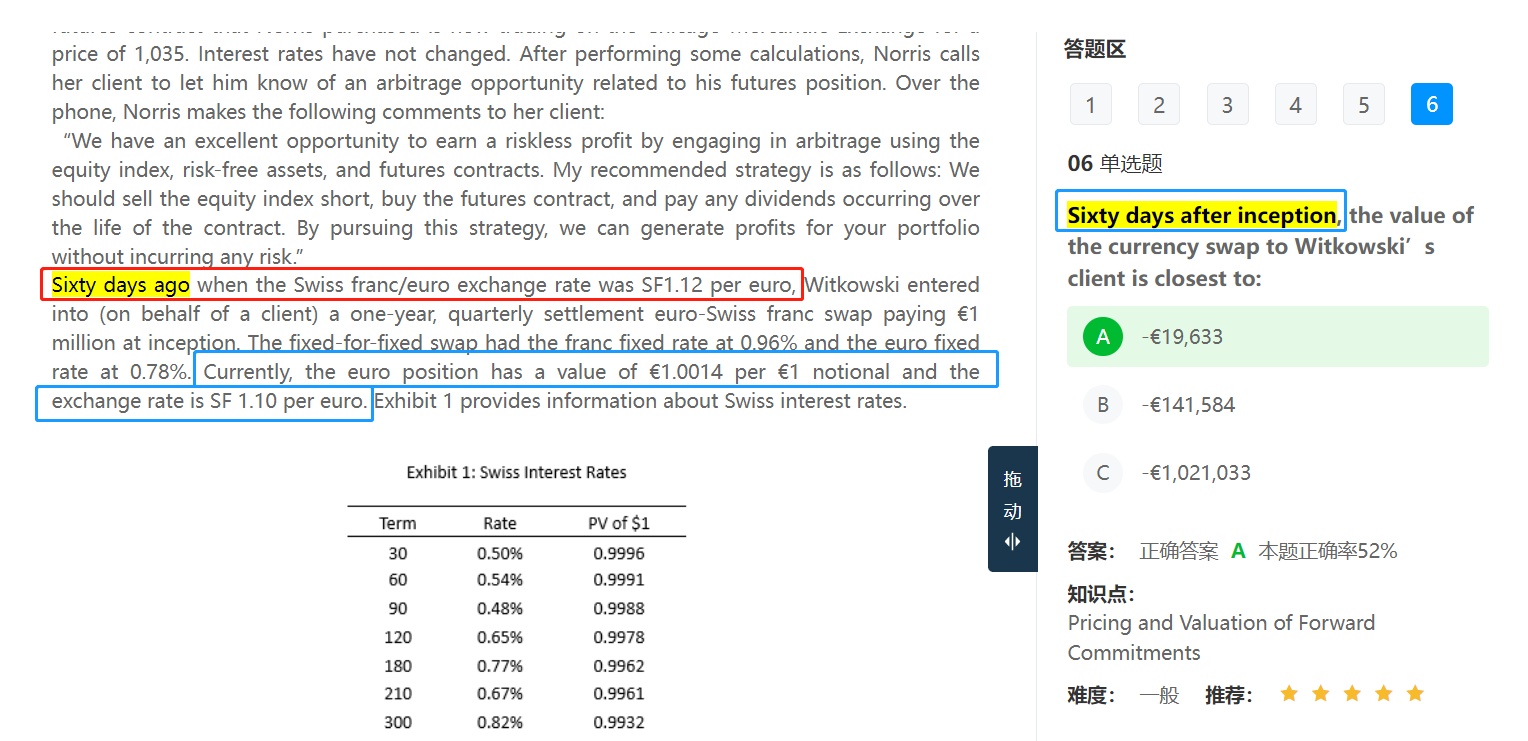 登录金程网校,然后找链接里的Q6题目,视频解析大致时间点给你标好了,它这个题目就是在解释为什么会用两个汇率计算