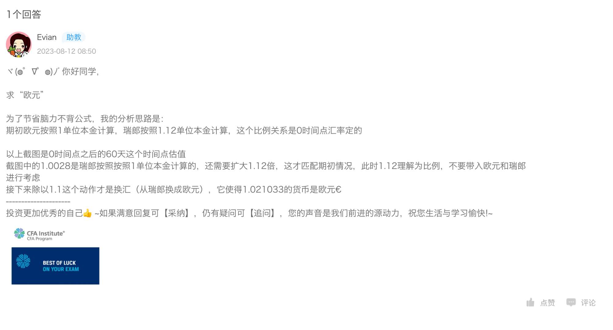 3)1.0028*1.12对应的欧元,换成瑞郎不是*1.1吗,因为一欧元= 1.1瑞郎?