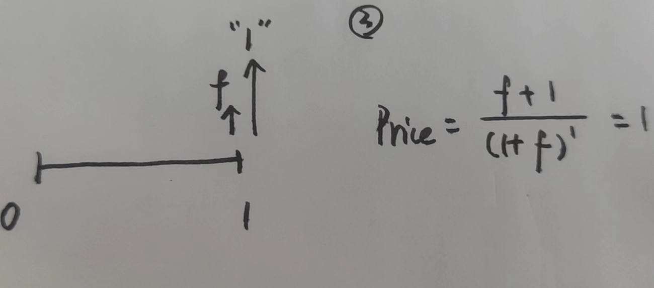假设债券面值为1,0时刻确定的下一期(1时刻)coupon rate(f)和折现率(f),那么1时刻的现金流就是 1+f,将其用折现率f折现回0时刻,折现结果是1,就相当于是债券面值1。