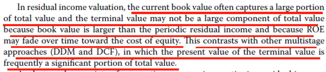 Tom老师: Statement 1 说的是terminal value在RI模型中占比要比DCF模型占比大。Tom老师你只说的RI模型中占比最大的是B0。但是没解释清楚为什么terminal value在RI模型中占比,不比DCF模型占比大的原因啊?