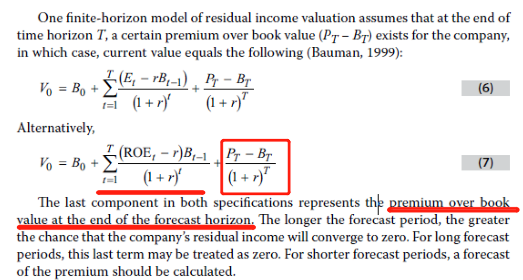 V0 = B0+精确估计阶段RI预测值的现值+最后阶段RI的现值