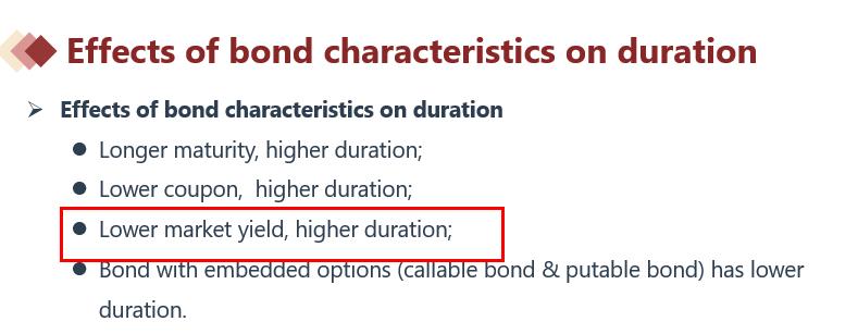 利率下降,久期上升,这是久期的影响因素之一。这个内容我们在一级里面学过的。