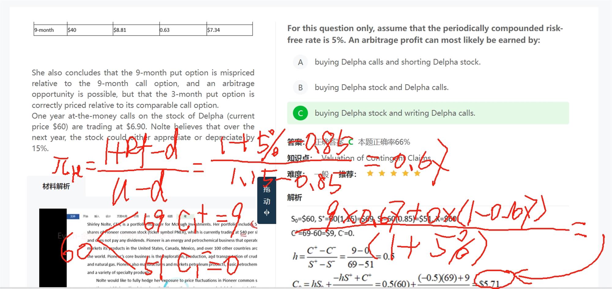 第四题,用二叉树方法也可以算出选第三个选项,但是算出来的合理定价是6.03,这么做有错吗,一定要用无套利方法吗?