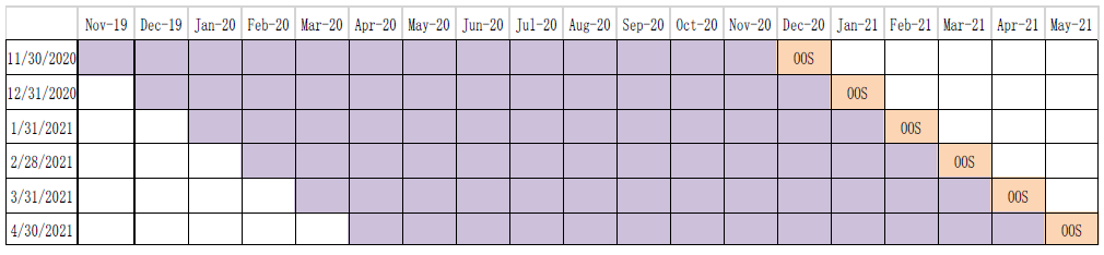 你好,rolling windows是滚动窗口法,这个方法在期初会根据历史样本内的数据构建投资组合策略,并以之后的样本外数据对其进行回测,投资经理随着时间推移不断地重复此过程。下图为滚动窗口回测的示例。可以看到它是有规律的,一期一期的向后滚动。
