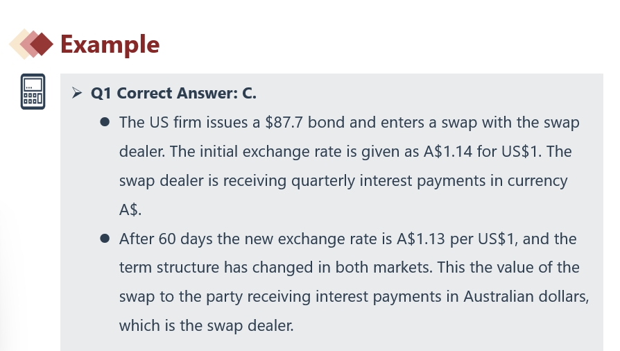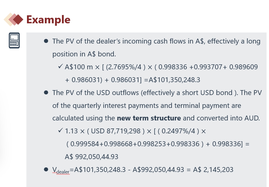 这里的第二问,如果把前面第一问算出来的用美元的固定利息现值-澳元的利息现值算可以吗? 即 1.00082978 - 1.013502*1.14*1.13/1