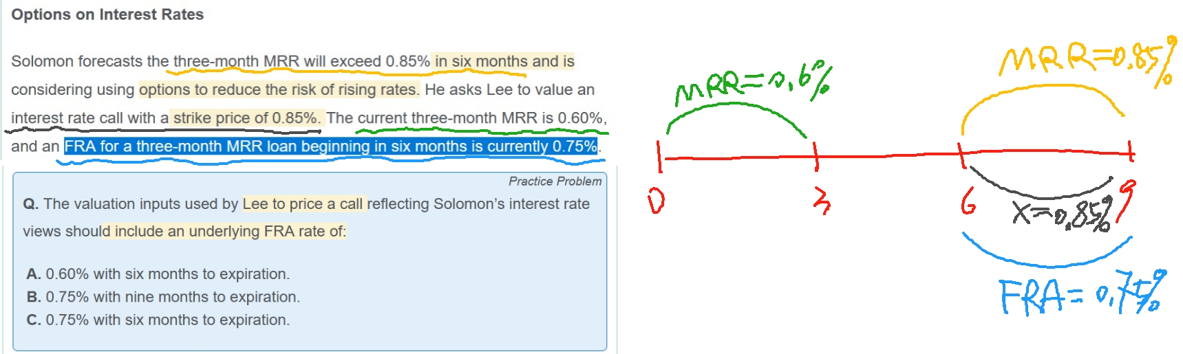 题目问的“underlying FRA rate”对应下图蓝色0.75%