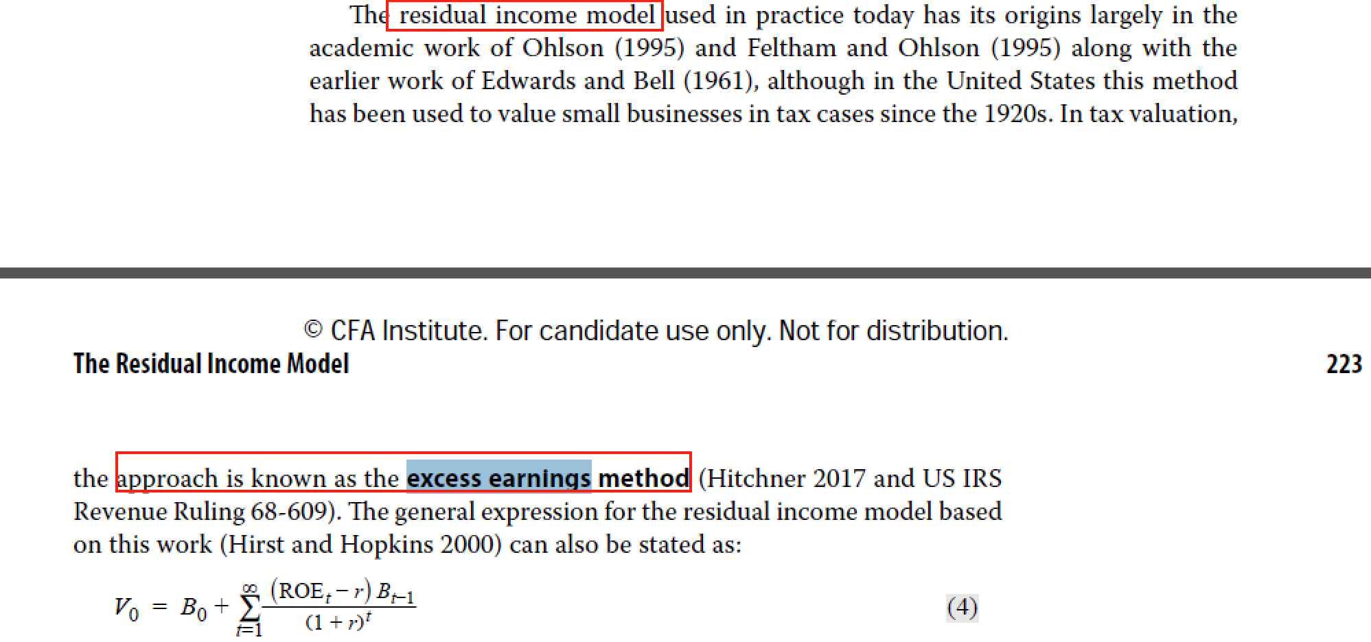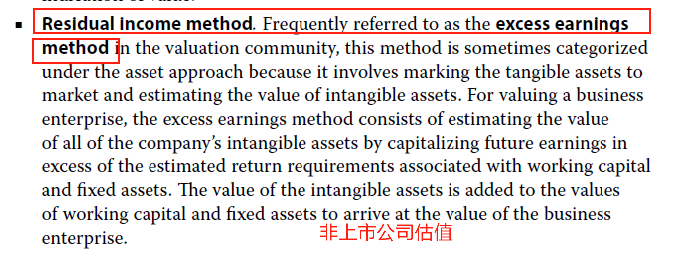 在residual income model这一章中说了,residual income model也被称为excess earnings method,和非上市公司估值中的用词是一模一样的。