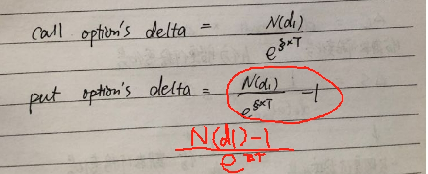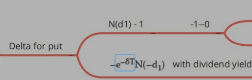 e^(τT)是对股利的调整,然后乘以"-N(-d1)"就是delta