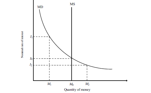 你还记得一级是曾经学过这个图像的。当Money supply增加,与money demand的交点会向右下方移动,利率是降低的。