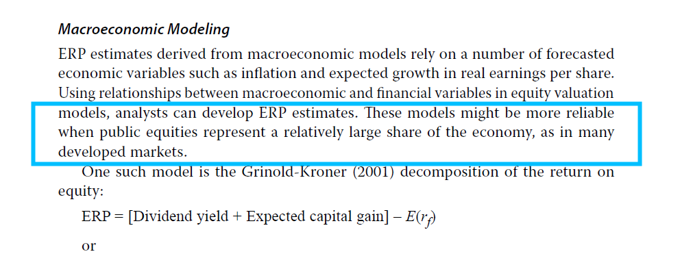 就比如说GK模型中有Real economic growth这个因子,如果上市股票占经济比重较小,那么经济增长就不能解释ERP了。