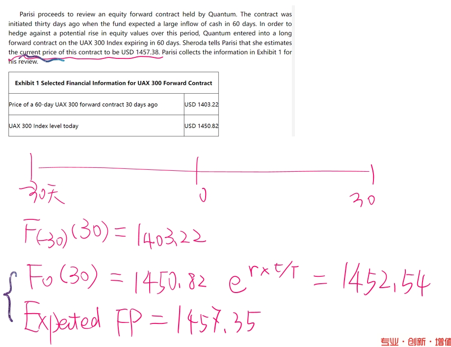 Q2是看套利机会,套利是当下锁定(确定)一个无风险收益,应该对比“理论价值”1452.54 和 投资者预测的价格1457.35,都是从当下时间点去看30天后