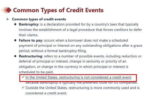 相关内容见下图讲义,只有Restructuring里面,In the United States, restructuring is not considered a credit event