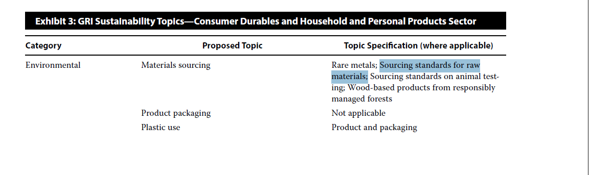 你好同学Sourcing standards for raw materials是属于ESG中environmental category的。更严厉的采购标准是对环境有帮助的可以参考原版书截图如果我的回答帮到了你,可以点击"采纳"~