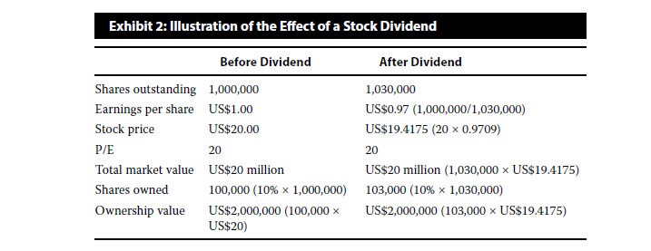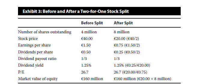 就像原版书中给出了股票股利跟股票拆分的两个例子。