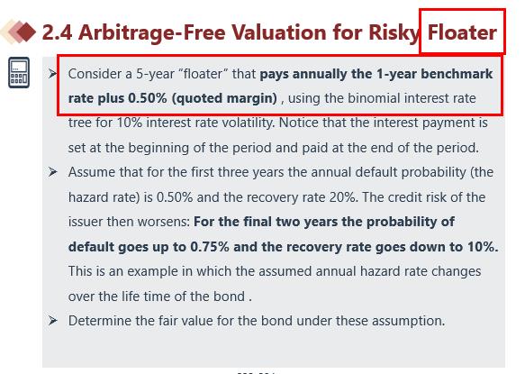 因为前面题干说了这是一个Floater,coupon rate是1-year benchmark rate plus 0.50%,见下图
